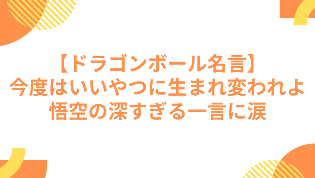 【ドラゴンボール名言】今度はいいやつに生まれ変われよ|悟空の深すぎる一言に涙